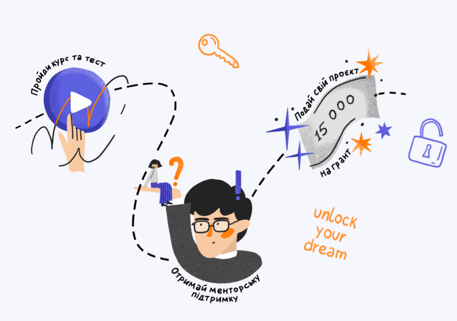Школа грантрайтингу та проєктного менеджменту доступна на платформі у вигляді п’ятнадцяти навчальних відеороликів. Тут розкриті усі теми, котрі потрібні для того аби отримати потрібні навички для написання грантової заявки та реалізації свого проєкту. Після проходження навчання молода людина проходить короткий тест для зрізу знань та отримує можливість подати свій проєкт на конкурс міні-грантів та отримати 15 000 грн на реалізацію твоєї мрії.