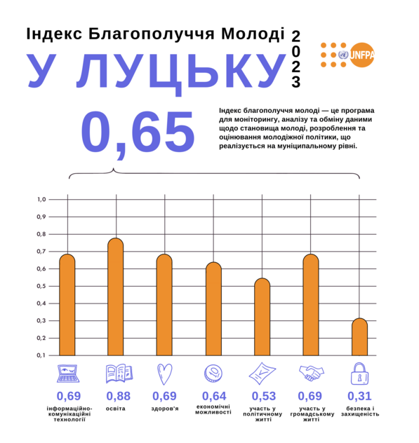 Індекс благополуччя молоді у Луцькій міській територіальній громаді у 2023 році становить 0,65.