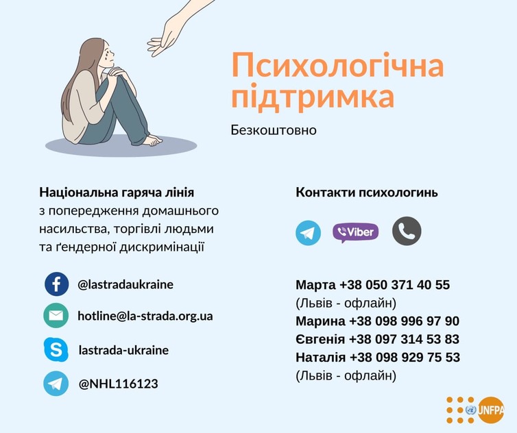 Сервіси, які працюють в межах роботи UNFPA Україна, продовжують надавати безкоштовну психологічну підтримку у цей складний час.