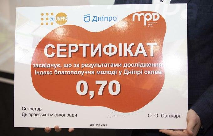 Опитування тривало місяць, а участь у ньому взяли 817 дніпрян віком від 14 до 35 років. Загальний індекс благополуччя молоді у Дніпрі - 0,70 (де мінімально – 0, максимально – 1).