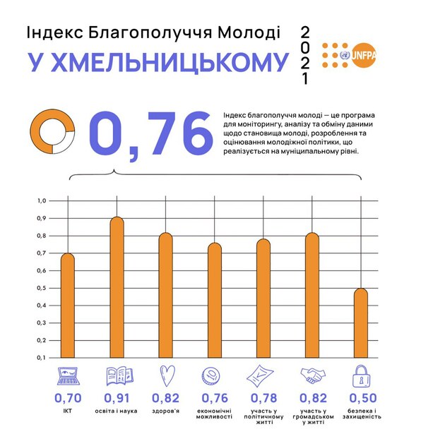 У Хмельницькому визначили #ІндексБлагополуччяМолоді! У 2021 загальний показник #ІБМ становить 0,76 балів (де 1 максимальна величина).