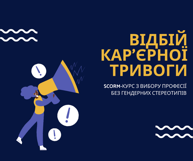 SCORM-курс з вибору професії без гендерних стереотипів «Відбій кар’єрної тривоги!" включає в себе 5 мультимедійних уроків, кожен із яких допомагає дізнатися більше про розвиток та тенденції гендерної рівності у різних професійних сферах, причини гендерних трансформацій та успішні історії жінок і чоловіків у різних професіях. Курс доступний за посиланням: https://griml.com/osoEU