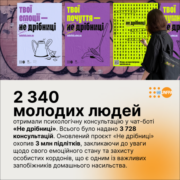 Проєкт “Не Дрібниці” – простір, де молодь може навчитись розпізнавати психологічне насильство та будувати здорові стосунки. Цього року в межах проєкту запрацював сайт www.notrivia.com.ua та чат-бот в Telegram @no_trivia_bot, що також допомагає підліткам розібратися у своїх переживаннях, які спричинила або загострила війна.
