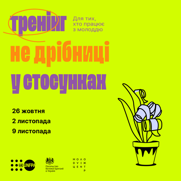 Тренінг реалізують МолоДвіж Центр. Львів / MoloDvizh Center. Lviv у співпраці з UNFPA Ukraine в межах проєкту "Не дрібниці" за підтримки British Embassy Kyiv
